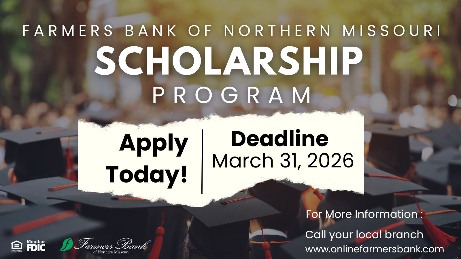 All Farmers Bank of Northern Missouri locations will be closed Monday, February 16 for Presidents' Day. Normal hours will resume on Tuesday, February 17.