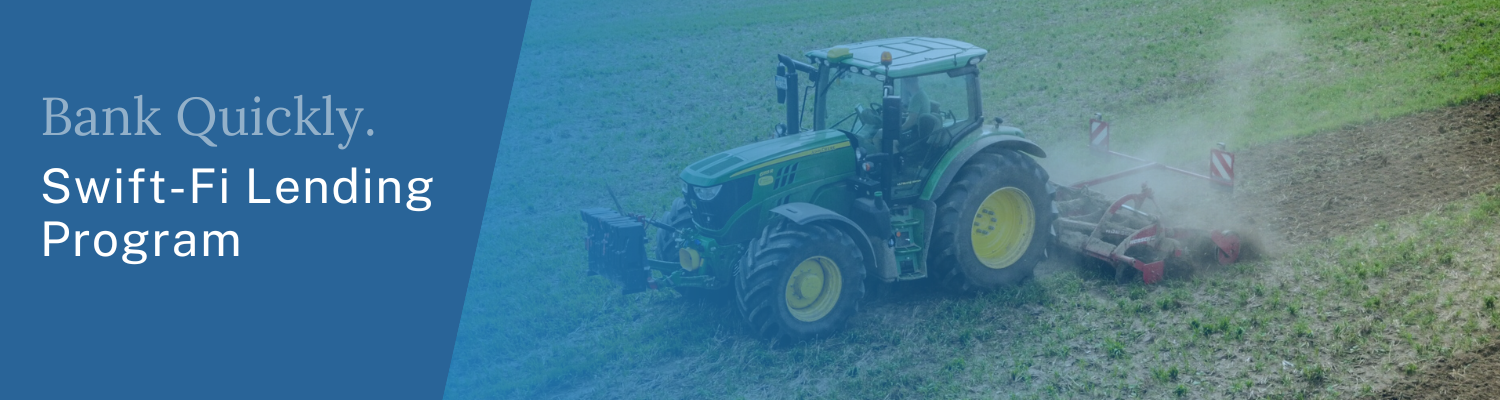 With our Swift-Fi Lending Program, Farmers Bank can help you get the equipment update you need, when you need it. Through a streamlined application and fast approval process, the Swift-Fi program is specifically designed to help customers finance new and late model machinery, to help them get back in the field quickly.