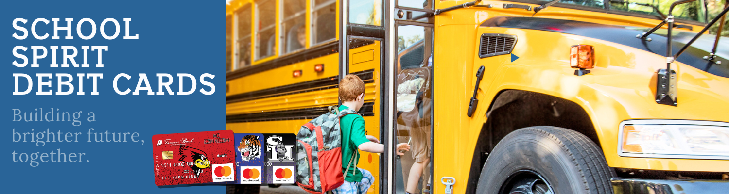 Stop in at your local Farmers Bank today to show your support for your local school by opting in for a School Spirit Debit Card. Together, we can build a bright future!